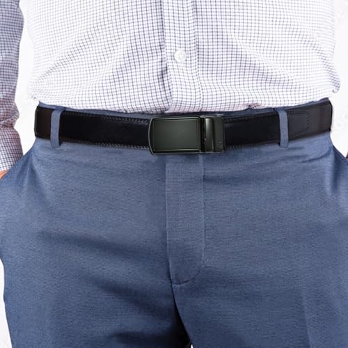 • DURABLE FAUX LEATHER - This click belt is crafted from high quality animal-friendly leather and features a sleek black or silver zinc alloy buckle; making this a beautiful casual or dress belt for men to last for years