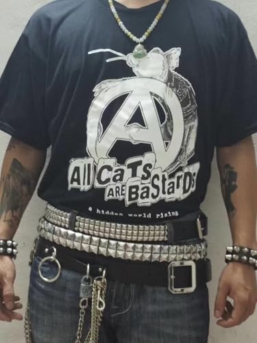 • These men's belts are perfect for those with a punk - rock style. We have real leather goth belts, black leather spiked belts, and punk belts. Our studded belts come in various designs, including studded leather belts for men with removable buckles, pyramid studded belts, and black studded belts. Whether you're looking for a belt to pair with your jeans or want to show off your punk style, our mens studded leather belts, especially the mens black studded leather belts, are great choices.