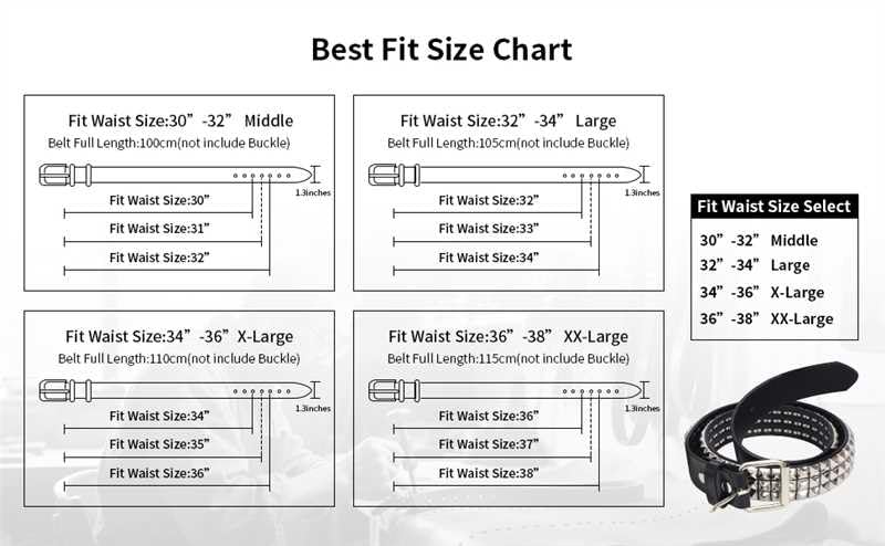 • Width 3.3 cm /1.3 inches. There are 6 holes in the belt to make the belt more suitable for waist size. The belt fastener is a detachable button closure for easy adjustment this belt is measured from inside edge of buckle the the center hole (the third hole from belt tip). For best fit, order 2 inches larger than pants size. e.g. Size 32 pants should order at least size 34" belt.