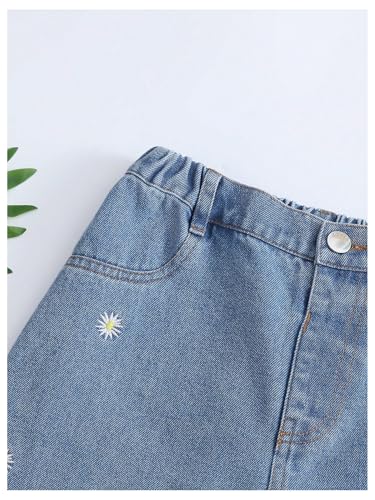 WDIRARA Girl's Floral Embroidery Elastic Waist Wide Leg Long Denim Pants Jeans with Pockets 5