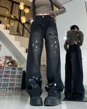 HOT ! Y2K Aesthetic Cargo Track Pants, Cyber Fairy Grunge Pants, Downtown Girl Black Star Jeans, Gothic Ripped Pants