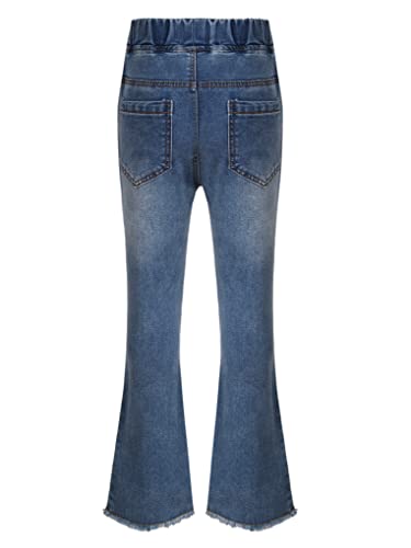 JanJean Kids Girls Elastic Waist Irregular Hem Bell-Bottom Denim Pants Casual Distressed Flare Jeans Casual Wear 7