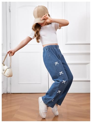 GORGLITTER Girl's Bow Baggy Jeans Pants Wide Leg Elastic Waist Straight Leg Denim Jeans Pants Joggers 6