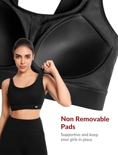 Yvette Adjustable Sports Bras for Women High Support Large Bust Wireless Running Workout Sports Bra High Impact Plus Size 4