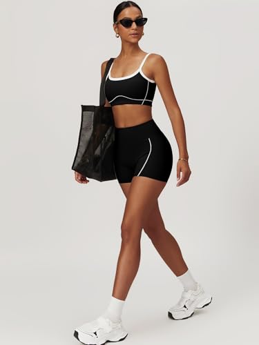 HOT ! Workout Sets for Women 2 Piece Contrast Panel Sports Bra Tummy Control Butt lifting Shorts Jogger Outfits