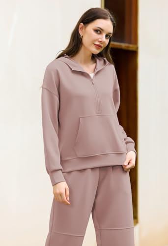 • Design: This Lounge Set features a half-zip hooded sweatshirt and wide-leg sweatpant designs that can be worn together or separately. Sweatsuits Women 2 piece outfit with pockets zip up.