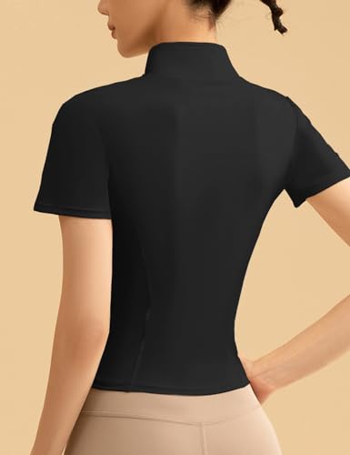 VIEWON Women's Running Slim Full Zipper Stand-up Collar Fitness Casual Short Sleeve Sports Workout Jacket 4