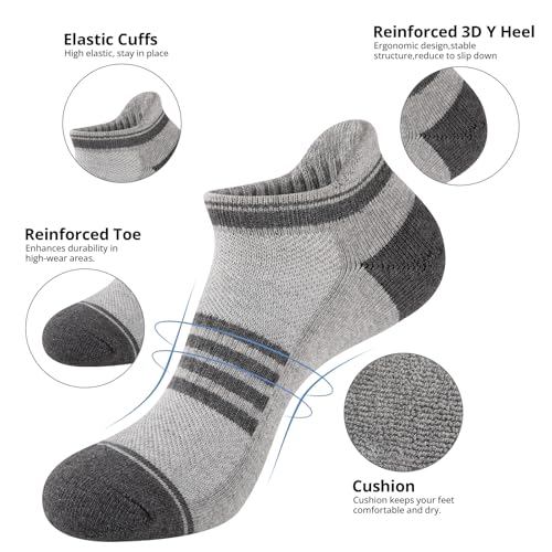 COOVAN Mens Ankle Socks 8 Pairs Cotton Cushioned Breathable Athletic Tab Running Anti-Blister Sports Socks 6