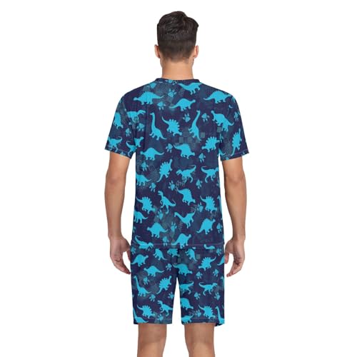 Men's Short Sleeve Pajama Set Cute Dinosaurs Blue Summer Pjs Set 2 Piece Loungewear Sleepwear with Pockets 1