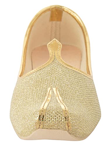 BombayFlow Men's Tiger Gold Glitter Punjabi Jutti Indian Handmade Gold Shoes Loafers, Khussa Shoes Juti India Wedding Kurta Sherwani Khussa Mojari Men's 6