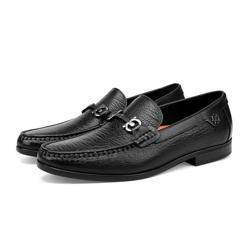 Black Leather Dress Shoes for Men, Casual Metal Buckle Formal Business Shoes Wedding Slip on Loafer Party Dress Shoes 6