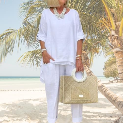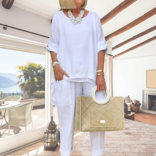 • Match Ideas: Womens 2 piece outfits can be easily matched.Wide leg pant sets can be matched with a cardigan or shawl on chilly days. and any other items you like.Linen Set for Women Linen pant suits for women make great gifts for mothers, aunts, and more! They feature cotton and linen with a breathable and sweat-absorbent design. We recommend hand washing for best results.