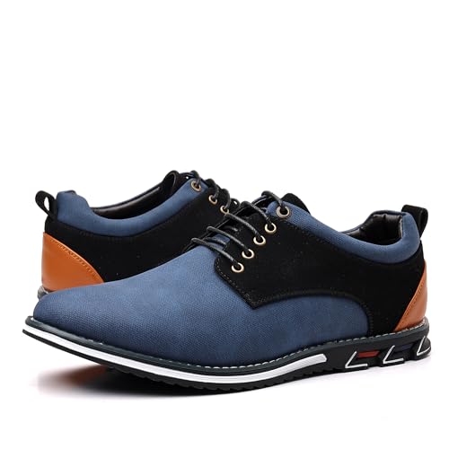 Mens Dress Sneakers Wide Comfortable Casual Dress Shoes Oxford Lace-up Business Casual Walking Dress Shoes for Men Size 8wide -Blue 6