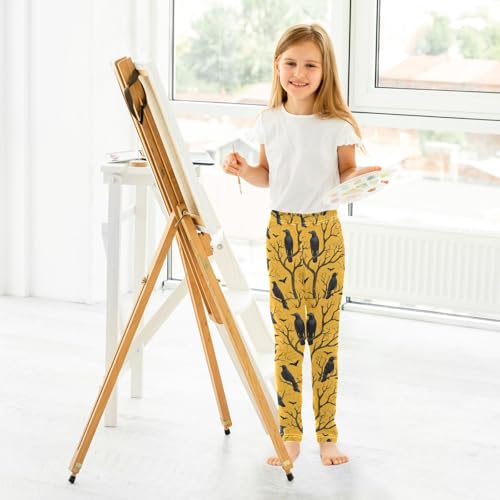 Girls' Athletic Leggings Ankle Length Yoga Dance Pants Kids Teen 4T Crow Branch Bat 6