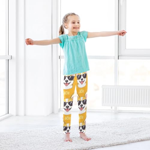HOT ! Corgi with Sunglass Girls Leggings,Workout Leggings for Girls Toddler Athletic Legging Size for 3-10T