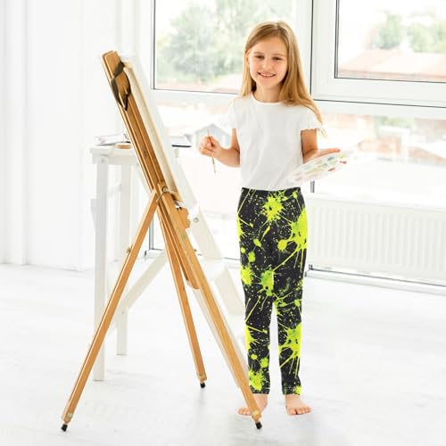 Neon Green Paint Splatters Girls Leggings Ultra Soft Compression Yoga Gym Pants for Kids 4-10T 7