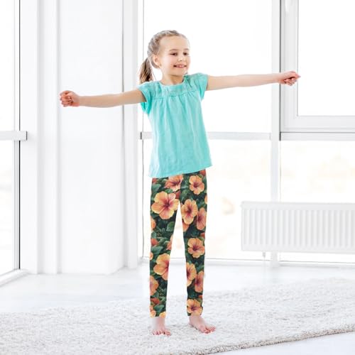 Girls Leggings Tropical Hawaiian Hibiscus Flowers Soft Toddler Leggings for Girls Kids Pants Size 4T-10T 5