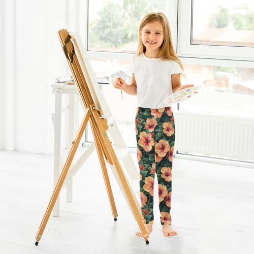 Girls Leggings Tropical Hawaiian Hibiscus Flowers Soft Toddler Leggings for Girls Kids Pants Size 4T-10T 7