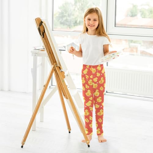 KLL Children Cute Yellow Rubber Ducks Little Girls Athletic Leggings Fashion High Waisted Pants Gym 5