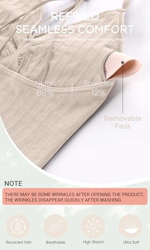 • SEAMLESS RIBBED FABRIC: Skin-friendly and soft rib-like texture, 4-way stretch fabric made with a seamless knitting technology for a comfortable, form-hugging fit.