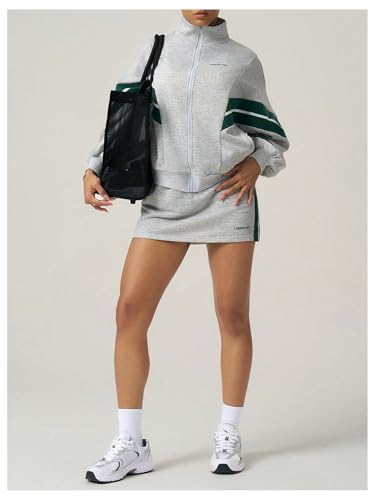 • Features: Elastic waist sweat skirt with built in shorts, side stripes, mini length, athletic skort, athleisure
