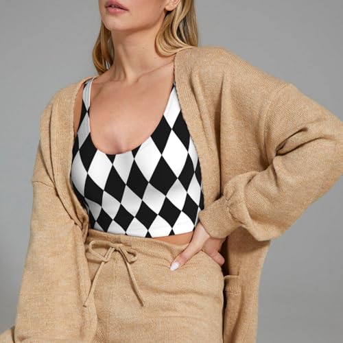 HOT ! Sports Bras for Women, Black and White Diamonds Workout Crop Tank Tops, U Back Sports Bra Athletic Tops