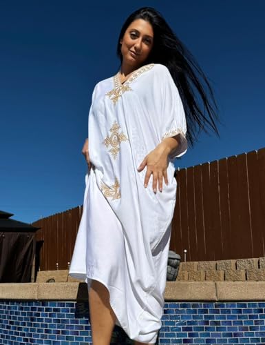 More information about Bsubseach Gold Embroidery Long Kaftan Dresses V Neck Caftan Dress Beach Cover Ups for Women Embroidery