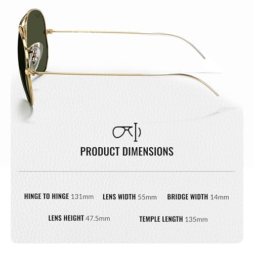 • PERFECT FIT: Experience the perfect fit with these Ray-Ban sunglasses. Featuring lens dimensions of 55mm width, 47mm height, 14mm bridge, and 135mm temple length, these shades offer both style and comfort. Elevate your style with the timeless appeal of these sunglasses, tailored for the modern man.
