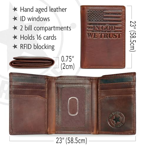 More information about The Patriot American Flag Trifold Wallet for Men, RFID Blocking, Double Bill Compartment, Full Grain Cowhide Leather Wallet, Vintage Brown
