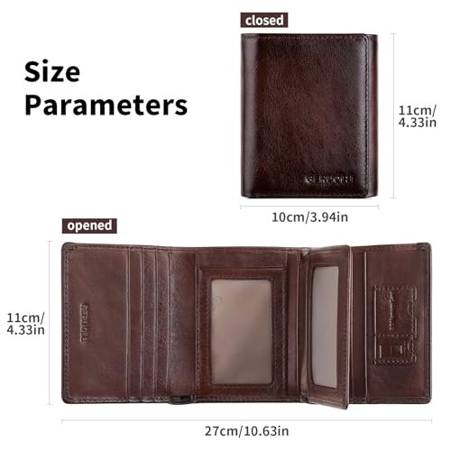 More information about Trifold Wallets for Men Genuine Leather Large Capacity RFID Blocking, Includes Id Window and Credit Card Holder,Mens Wallets Leather (Coffee)