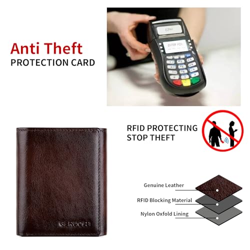 Trifold Wallets for Men Genuine Leather Large Capacity RFID Blocking, Includes Id Window and Credit Card Holder,Mens Wallets Leather (Coffee) 6