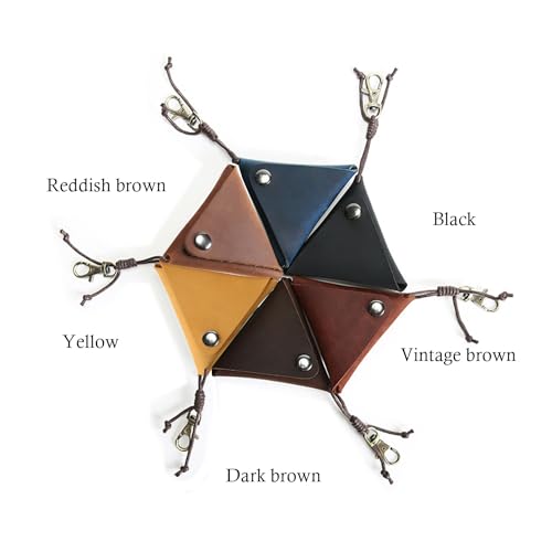 BRTROO Small & Mini Leather Coin Change Purse Pouch for Men & Women - Triangle Genuine Leather Medieval Retro Portable Storage Pouch(Dark brown) 5