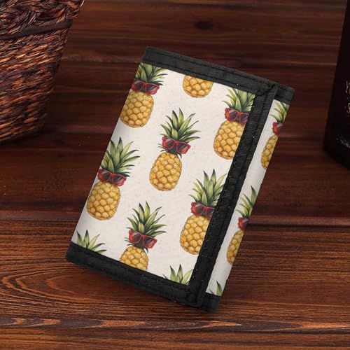 • Design: Featuring a versatile trifold design, this men's wallet includes a front zipper compartment for quick access to essentials. Inside, there are spaces dedicated for ID cards, cards, and changes. The inclusion of a keychain allows you to carry your keys effortlessly, making it a Red Glasses Pineapple A Print simple wallet for men that's all about practicality