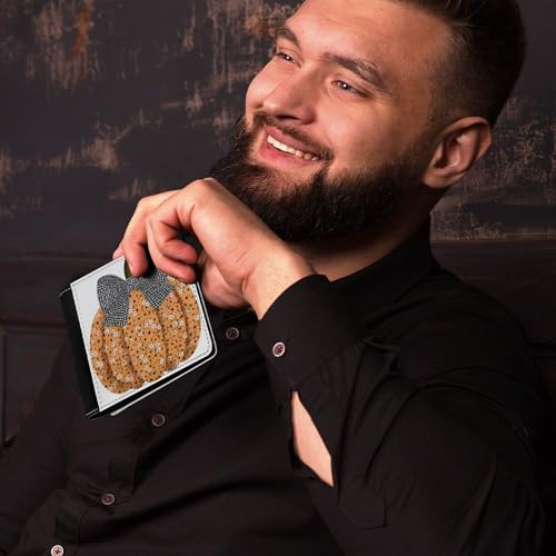 Orange Pumpkin with Bow Soft PU Leather Bifold Wallet, Coin Purse Credit Pass Case, Durable Card-Holder Slim Billfold for Men Woman Money Storage 5