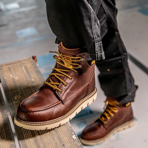 • Built for tough jobs and lasting comfort, the DEWALT Flex Men’s Moc Toe Work Boot is designed to keep you going all day. It features a premium cowhide leather upper and a flex rubber outsole that moves with you for enhanced comfort and stability. A breathable air mesh lining keeps your feet cool, while the lightweight EVA midsole delivers all-day cushioning. Finished with a classic moc toe design, this boot blends rugged durability with everyday style.