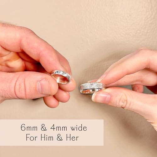 • 𝐂𝐀𝐑𝐑𝐘 𝐓𝐇𝐄𝐈𝐑 𝐌𝐄𝐌𝐎𝐑𝐘 𝐂𝐋𝐎𝐒𝐄 - At a sleek 4mm wide, these custom promise rings for couples strike the ideal balance of sentimental and subtle. Featuring an actual fingerprint, handwriting, or a meaningful message, this personalized fingerprint ring is the perfect sympathy gift for those going through a loss, or a long distance relationship gift to keep you and your partner close.