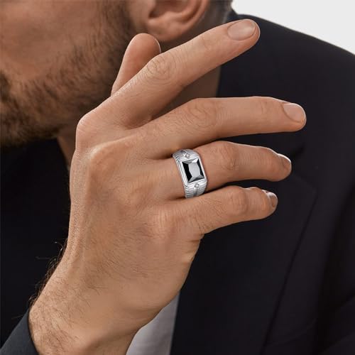 More information about 10ct 8x12mm Square-Cut Created Sapphire|Peridot Ring 925 Sterling Silver Ring Mens Engagement Wedding Bands Ring Size 6-14