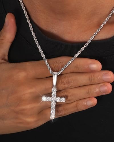 LuxeFlex 925 Silver Moissanite Cross Pendant, VVS D Clarity Moissanite Rhodium Plated White Gold Classic Cross Pendant, Hip Hop Fashion Sparkling Traditional Necklace Gift 4