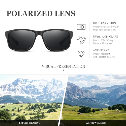 • HD Polarized Sunglasses: To protect your eyes from the harm of UV rays, Reglaaly mens polarized sunglasses are made of high quality polarized lenses with UV400 protective function. The HD polarized lenses can block over 99.9% of harmful UV rays and reduce glare and reflections of strong light, giving you a clear visual experience for outdoor activity