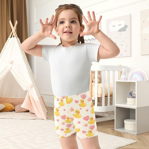 Duck Pink Hearts Pattern Girls Shorts Elastic Waist Sports Shorts Girls Leggings Pants for 4-10 Years 4