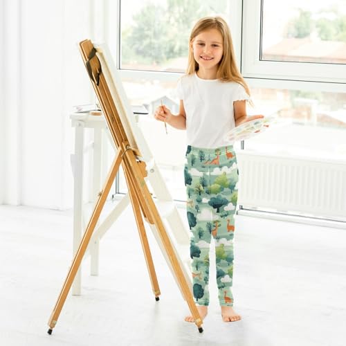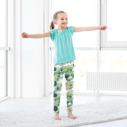 Wusikd Dinosaurs Girls' Leggings Toddler Doodles Clouds Tree Kids Yoga Pants Dance Active Tights 4T 7