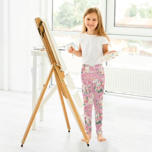 Unicorns Flowers Girls' Leggings Toddler Doodles Pink Flowers Kids Yoga Pants Dance Active Tights 4T 5