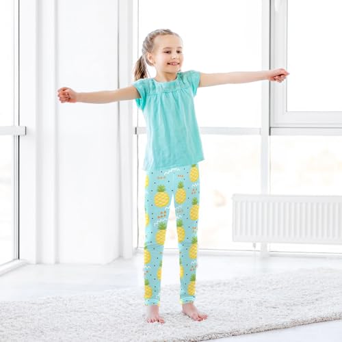 Cute Pineapple Elements on Blue Background Girls Leggings,Workout Leggings for Girls Toddler Athletic Leggings Size for 3-10T 4