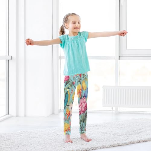 Bolaz Toddler Girls Leggings Printed Yoga Pants Leggings Blue Yellow Hummingbird for Kids 7