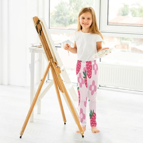 Toddler Girls Leggings Printed Yoga Pants Leggings Strawberries Pink Floral for Kids 4