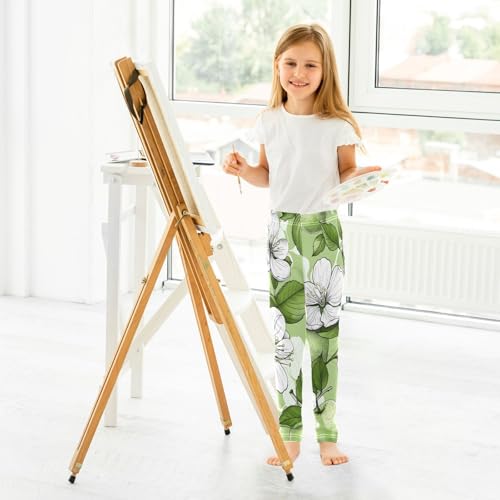 Toddler Girls Leggings Printed Yoga Pants Leggings White Apple Flowers for Kids 5