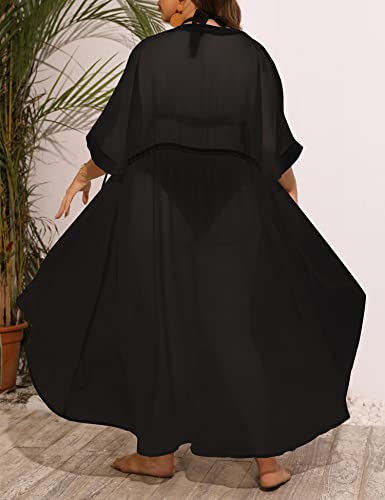 SWOMOG Women Cover Ups Plus Size Swimsuit Chiffon Kimono Long Cardigan Open Front Bathing Suit Summer Flowy Bikini Beachwear 5