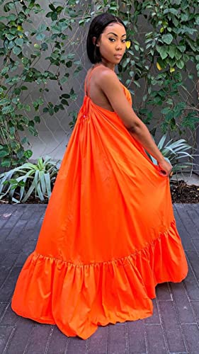 More information about Adogirl Women's Sexy Spaghetti Strap Sleeveless Ruched Ruffle Hem Bandage Oversized Beach Loose Long Maxi Swing Dress