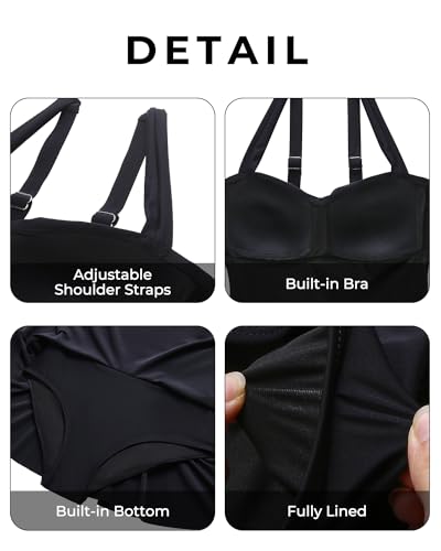 • Swim Dresses for Women Tummy Control:This fully lined swimsuit with ruched on the stomach area offers excellent tummy control.
