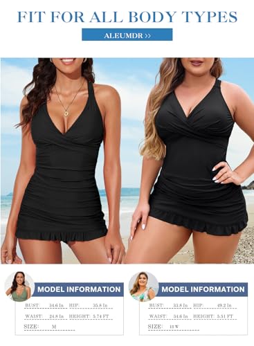 HOT ! Aleumdr Women Retro Tankini Swimdress Tummy Control Bathing Suits Two Piece Tankini Tops with Bikini Bottoms Twist Swimwear